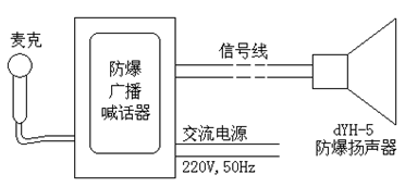 GJ-2型防爆廣播喊話系統(tǒng)又稱防爆廣播擴音機或防爆擴音喊話器,由HZBQ-3B型防爆廣播喊話器(防爆電話機)、麥克風(或手持話筒)和dYH—5型防爆揚聲器組成。打開麥克風上的開關(guān),對著麥克風(話筒)講話,可以通過揚聲器對現(xiàn)場進行廣播呼叫,發(fā)布生產(chǎn)指令或報警。該系統(tǒng)也可加入防爆警燈,構(gòu)成聲和光同時提示信號。